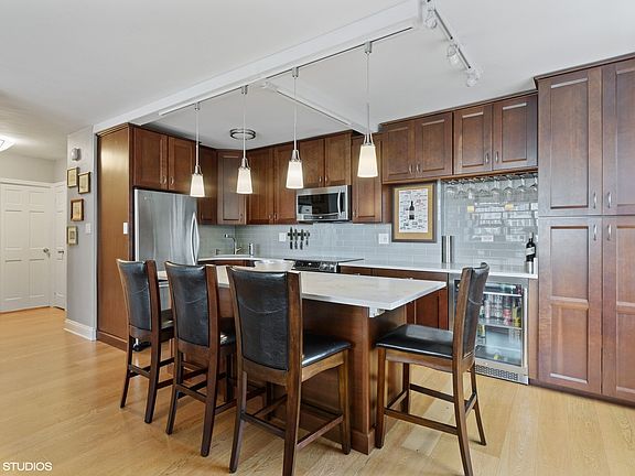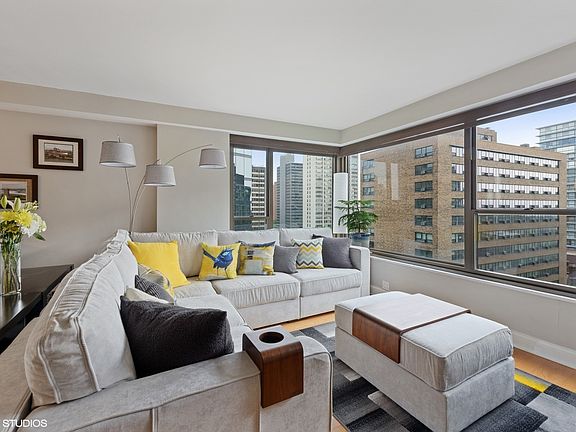 HIGHLY UPGRADED corner north-east facing 2 bed/2bath with STUNNING LAKE AND PARK VIEWS in a perfect Lakeview/Lincoln Park location! Owner spared no expense renovating this unit! A true chef's kitchen featuring extended island, quartz countertops, new backsplash, induction stovetop/convection oven, Bosch dishwasher, beverage fridge, extended cabinet space, among other updates. Ideal floorplan with extremely spacious living spaces and bedrooms, and a full wall of windows flood this unit with natural light. Tastefully renovated spa-like master bath boasts new designer tile throughout, Grohe and Hansgrohe fixtures, Toto toilet, and vanity. Remodeled guest bathroom features new bath tiling and fixtures, vanity, Toto toilet. Brand new washer dryer with plenty of storage, as well as additional storage in building. One valet parking spot included. Wonderful full amenity, pet friendly building with doorman, state of the art gym, party room, on-site manager & engineers, dry cleaner lockers, convenient GoGrocer on bottom level, and an incredible roof deck with sweeping lake and skyline views, lounge chairs, grills, and tables. Prime A+ location steps from the lakefront, public transportation, Marianos, Diversey Harbor, Broadway's vibrant retail/restaurant strip tucked within a quiet and tranquil setting. Located in the highly coveted NETTELHORST SCHOOL. Nothing left to do but move in. Welcome home!