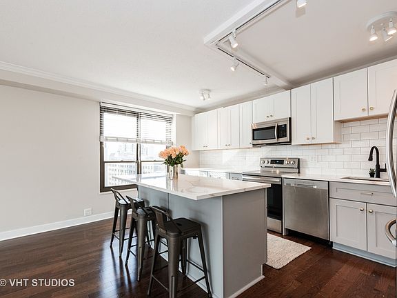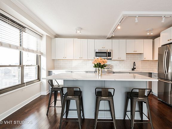 Enjoy beautiful park & city views from this bright SE corner 2 bedroom home. This freshly painted home offers an open floor plan with large living and entertaining space. A BRAND NEW gourmet kitchen complete with stainless steel appliances and a 7ft quartz island. Large bedrooms with new carpet, updated bathrooms, hardwood flooring, tremendous closets with builtins, and in unit washer/dryer are just some of the wonderful features that this property has to offer. Ideally located near the lake, park, dining, shopping, and public transportation. This full service building includes amenities such as a fitness center, night time doorman, roof deck, hospitality room, on-site manager and engineer, bike room, storage, and GO Grocery Store attached. On-Site Deeded parking available for $15,000.