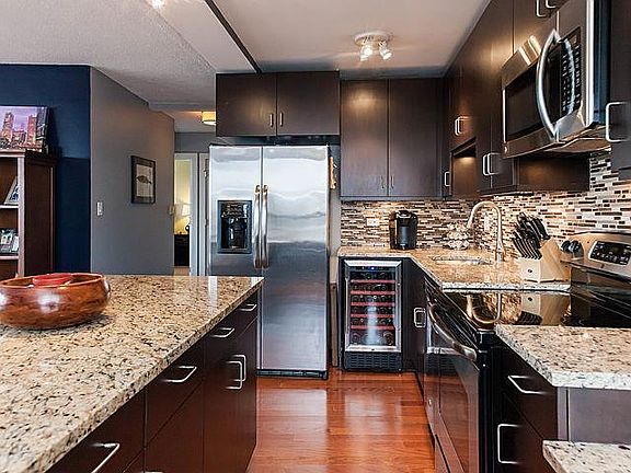 Sunny, Preferred South West Corner 2 Bedroom, 2 Bathroom in Ideal Lakeview Location! INDOOR VALET PARKING INCLUDED IN THE PRICE. One of the More Upgraded Condos in the Building. Upgraded Kitchen Features Custom 42 Inch Espresso Cabinetry, Built-In Desk, Glass Mosaic Backsplash, Undermount Lighting, Stainless Steel Appliances Including Wine Fridge, Oversized Island & Thick Granite Counters. Hardwood Floors, Custom Window Treatments Throughout, Professionally Organized Closets & In-Unit Washer/Dryer. Bathrooms Feature Porcelain Tile, Espresso Vanities & Master Bath with Glass Shower. Spacious Master with En-Suite Bath. Steps From Broadway Retail, Restaurant Strip & Lincoln Park. Building Amenities Include Doorman, Party Room, Gym, Storage, Rooftop Sundeck with Gas Grills, Dry Cleaning Lockers & GO Grocer off the Lobby. SEE 3D TOUR LINK TO VIRTUALLY TOUR PROPERTY!