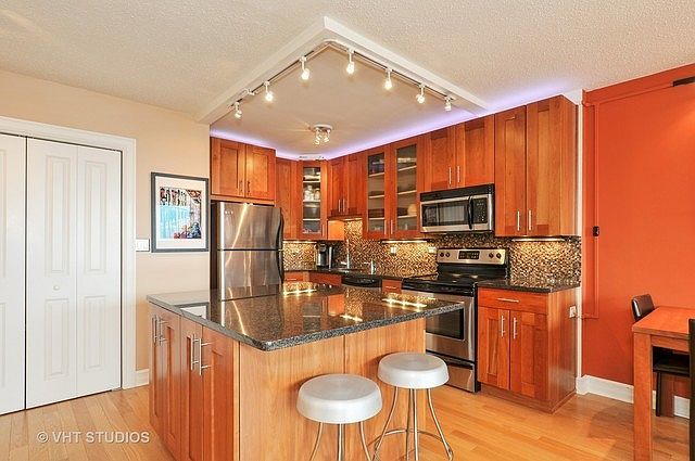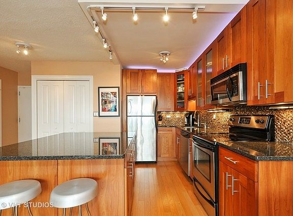 Amazing views of the lake from this bright and spacious East facing condo in East Lakeview! The well-appointed kitchen features stainless steel appliances, granite counters, 42" custom cherry cabinetry with under and above lighting and a custom stone backsplash! The kitchen opens to the large living/dining space for easy living and entertaining! Spacious bedroom boasts Elfa walk-in closet and a wall of windows. Impressive stone bath, large closets and in unit washer/dryer. Amenities including evening doorman, fitness facilities, dry cleaning services, and rooftop deck with fabulous views of the lake and city! Go Grocer attached to the building and Mariano's, Trader Joe's nearby. Steps to the lake, park and public transportation, as well as countless dining and entertainment options. Pet Friendly! Close to Bus and Brown and Purple Line.