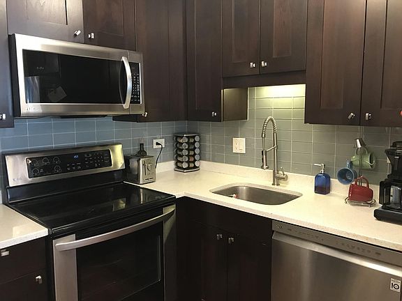 This amazing 1 bedroom, 1 bath condo can be yours for less than you can rent. The spacious living room and large bedroom has an entire wall of windows to brighten the space. There are two large walk-in closets that provide ample storage and the in-unit laundry adds convenience. The kitchen has dark cabinets with quartz counter tops, stainless appliances, beautiful glass backsplash and custom lighting. The building is equipped with a door man, exercise room, laundry room, dry cleaning pick-up, party room, bike storage and roof top deck with stunning city and lake views. Public transportation is outside the door with multiple bus lines to downtown, close to brown, purple and red lines. Conveniently located near Trader Joe's, Mariano's, shopping, driving range, mini golf, the lake shore path plus many restaurants. You can make it yours today!