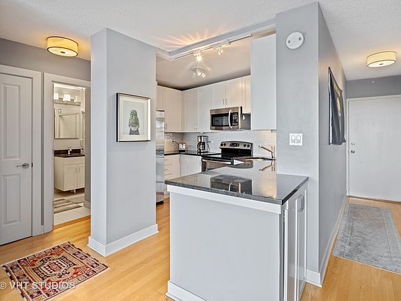 Beautiful and bright fully upgraded 1 bedroom, 1 bath in East Lakeview. This large condo features gorgeous west facing views, hardwood floors throughout, in unit washer/dryer, tastefully modern kitchen with peninsula, granite counters, subway tile backsplash and stainless steel appliances. Unbeatable locations being close to transportation, shopping, the lake, restaurants and nightlife. Pet friendly building with on-site management, gym, party room, nighttime doorman and Go Grocer grocery store. Has an amazing rooftop with lake views and common grills. Garage parking included in price! Express bus stop right outside your door. This unit will sell fast!