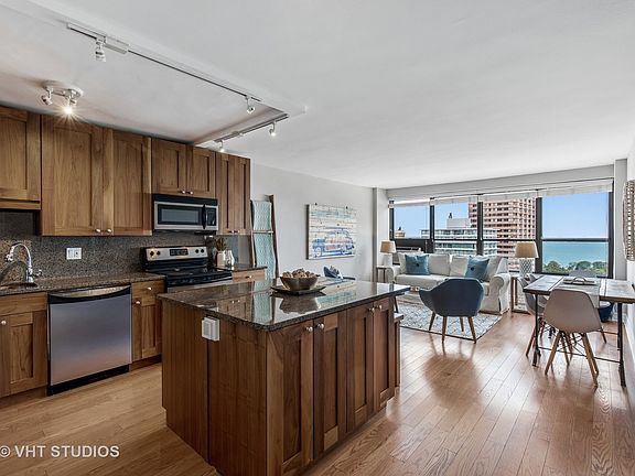 Stunning unobstructed lake views! Spacious and charming east facing 1 bed/1 bath with lake views from living room and bedroom with on-site valet garage parking included! Freshly painted, turn-key condo with in-unit washer/dryer. Coveted open concept floorplan with plenty of room for a dining table. Kitchen features island, granite counters, shaker-style cabinets and stainless steel appliances. Hardwood floors in main living area. Large bedroom with walk-in closet. Marble bathroom with linen closet. Well-run building with 3 new elevators and great amenities including: night-time doorstaff, rooftop deck with panoramic lake and city views, exercise room, party room, on-site property manager, storage, bike storage, dry cleaning drop off & Go Grocer. Pet friendly building (2 pets OK). Monthly assessments include valet garage parking, heat, night time doorstaff, on-site management, on-site engineers & use of common area amenities. Fantastic East Lakeview location, steps to Lakefront, bike/running path, public transit & Lake Shore Drive.