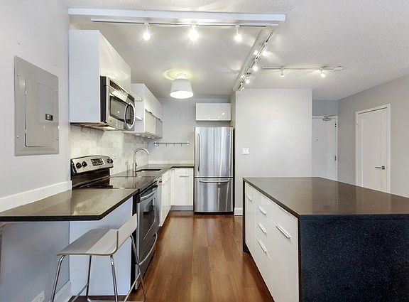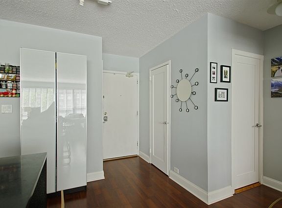 Outstanding, highly upgraded, designer owned east facing 1 bedroom. Wood floors throughout, Custom fit wood doors, brand new AC. Stunning white kitchen w/ ss appliances, honed granite counters including waterfall edges on the island and an in-drawer ironing board. Gutted bath w/ high end tilework, waterworks vanity, top fixtures and additional insulation. In unit W/D. custom fit window treatments throughout. Parking available for a fee both on and off site. Exceptional location, low assessments. Nothing was overlooked here!