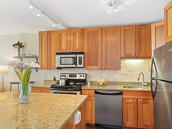 Enter this bright tastefully updated 1 bedroom, 1 bath condo unit with a full wall of east facing windows and new wide plank dark maple hardwood flooring. An open kitchen has shaker style cherry cabinetry, granite countertops, stainless steel appliances, attractive stone backsplash and a spacious island. Large sized master bedroom has a full wall of windows and plenty of space to fit a king bed and additional furniture. All closets have organized shelving. Updated bath with maple vanity, granite countertop, tub/shower combo with marble tilework. This unit also has a brand new LG in-unit washer/dryer. In addition, this owner made the extra expense to to have all ceilings skim coated for a smooth finish. A real warm and comfortable space. Indoor valet parking is available to rent from other owners at $250/month with several spots readily available. This is a highly desired East Lakeview elevator building that is pet friendly, provides onsite management and doorman service. Many amenities include a stunning roof top deck with tables, lounge chairs and grills; workout room, event space, laundry/valet, bike room, and an inhouse convenient store. Immediate access to bus and train transportation, lakefront parks, beaches, Diversey harbor, and many shops and dining/entertainment spots.