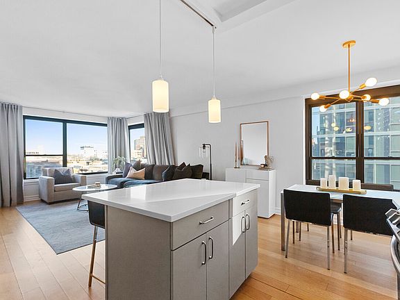 Experience the perfect combination of location and convenience at this modern East Lakeview condo! This bright corner unit features a spacious open-concept kitchen and living area, complete with hardwood floors, quartz countertops, stainless steel appliances, and a kitchen island. The large primary bedroom boasts an en suite bath and a custom-organized closet, while the generous second bedroom and guest bath provide ample additional space. Enjoy the convenience of in-unit laundry. This pet friendly building offers impressive amenities, including an evening doorman, a rooftop deck with stunning lake views and grilling stations, a full fitness center, Tide laundry service, party room, and an attached Go Grocer. Just steps away from the lake, bike path, and Diversey Harbor, public transportation, shopping, restaurants, entertainment, and all that Lakeview has to offer! This is a must see on your list!