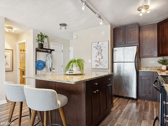 Welcome to your oasis in the heart of East Lakeview! This adorable 1 bedroom, 1 bathroom gem is nestled in an amenity-rich building that offers the epitome of urban living. The largest 1 bedroom tier in the building offers a generous and open floor plan. Upon entering, a meticulously designed space featuring durable vinyl floors will greet you. Wall to wall windows allow gorgeous eastern sunlight to pour through. The sleek kitchen boasts 42" shaker cabinets, granite countertops,giant island offering both prep and dining space and stainless steel appliances. The convenience of modern living is at your fingertips with an in-unit washer and dryer and newer AC units ensuring comfort year-round. Say goodbye to clutter with professionally organized closets, offering ample storage space for all your belongings, including 2 walk in closets. Relax and unwind in the spacious bedroom, offering tranquil eastern sunrise views, providing the perfect backdrop for peaceful mornings. This building offers tons of wonderful amenities including a laundry room, a roof deck with grills, interior access to Go Grocer for all your grocery needs, an evening door person for added security, an onsite manager, an exercise room to stay active, a party room for entertaining guests, a bike room for cyclists, and additional storage space. Experience the best of East Lakeview living with easy access to nearby parks, dining, shopping, and entertainment options. Steps to Diversey Harbor and Diversey Driving Range, shops and dining along Broadway, CTA bus stop right outside your door.