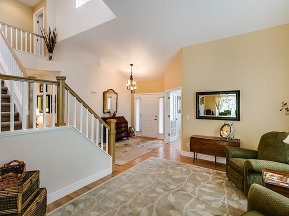 Bright, flowing floor plan with abundant natural light and custom high-end finishes throughout. This elegant 2 story home in Rock Creek offers remodeled master bath, main level office, beautifully finished basement with private guest suite & theater including projector & surround sound, gleaming wood & travertine floors, new carpet, paint and roof. Incredible, backyard oasis features lush lawn, lovely shade trees and beautiful shrubs and flowers plus a spacious, private deck with retractable awning, perfect for relaxing or entertaining. Home backs to open space & trails