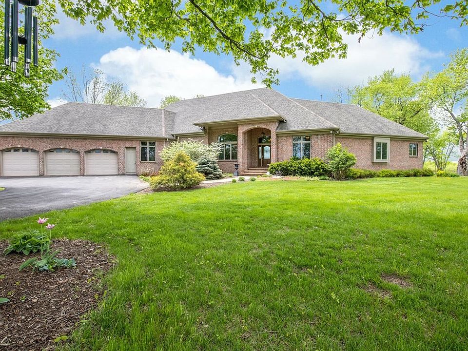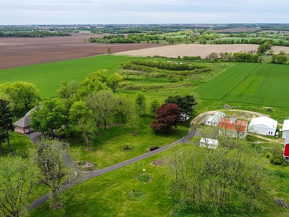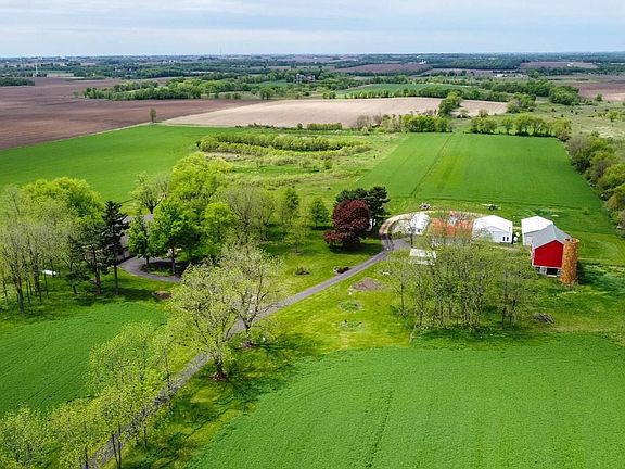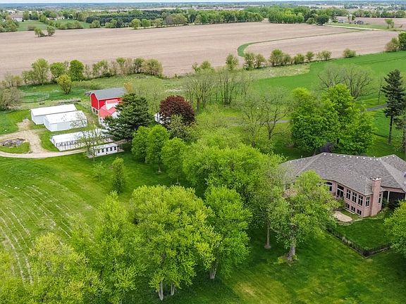 Absolutely stunning all brick, one owner, 4000 sq. ft. ranch home on 142.38 acres (93.6 tillable). Quality construction by James Olmstead with soaring 14'ceilings, Brazilian cherry hardwood floors, classical column room dividers. The floor to ceiling windows provide panoramic views from nearly every room.. The beautifully appointed kitchen is central to this open floor plan with ample counter space and cabinets and with chef pleasing Sub-Zero and Viking appliances. Multiple outbuildings include a classic barn, insulated and heated machine shed, whelping shed, and aviary. The crop land is currently leased and also includes a shallow ponds contract with Farm Services Agency.