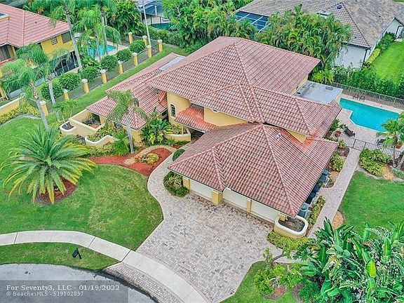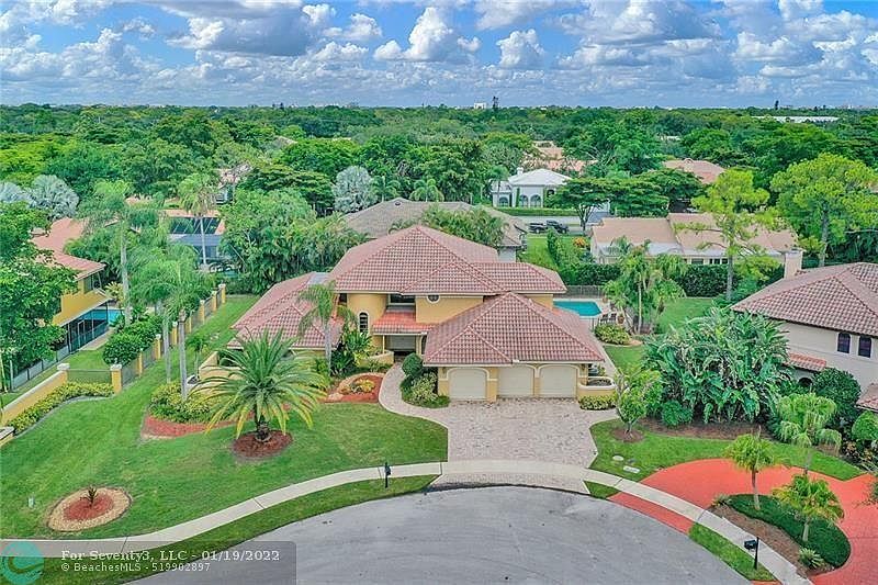 Appealing two story contemporary home in the heart of Boca Raton. Second floor is entirely the master suite with it's own private office/den/gym/baby nursery - whatever you choose to make it. This is a spacious home with just under 4,000 square feet of living area. Move right in or make this your dream home with some updating. Situated in a small quiet culdesac on an oversized 1/3 acre lot.