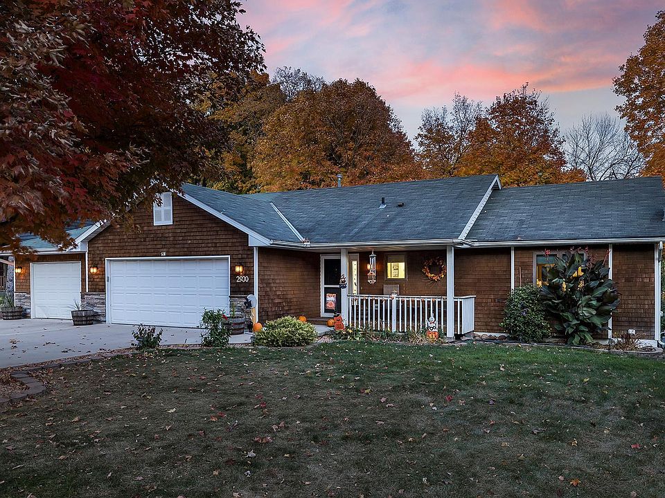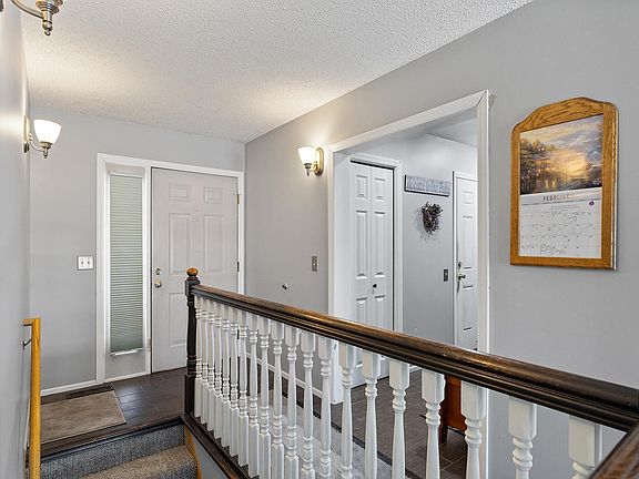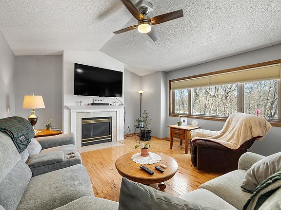 Charming and spacious, this home offers a functional layout with great features! The main floor boasts a welcoming foyer and mudroom with abundant shelving, beautiful hardwood floors, and an open-concept living, dining, and kitchen area. Enjoy cozy evenings by the fireplace in the bright living room with vaulted ceilings. Down the hall you will find 2 generously sized bedrooms and a full bath. The lower level provides a secondary living room with a fireplace, 2 additional bedrooms, and another full bath. Outside offers a lovely front porch, a large backyard deck, and a private yard—perfect for relaxing or entertaining!
