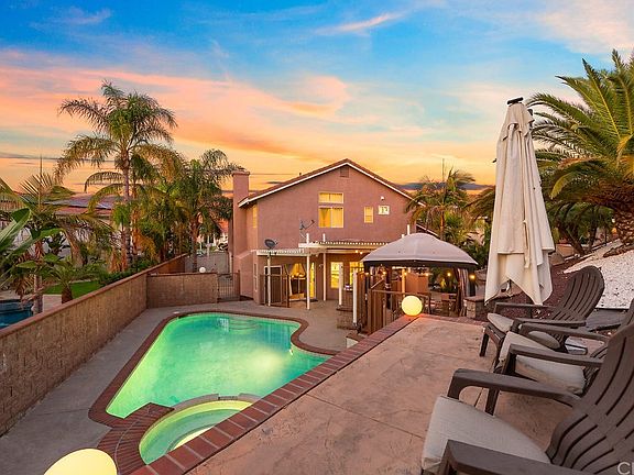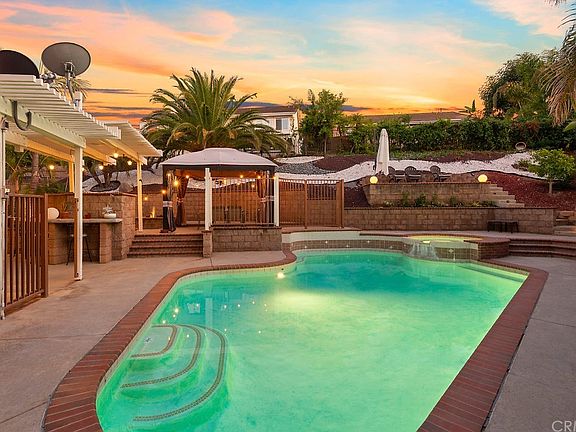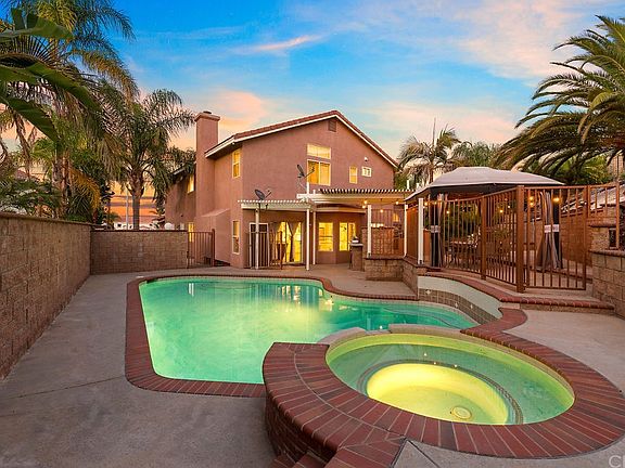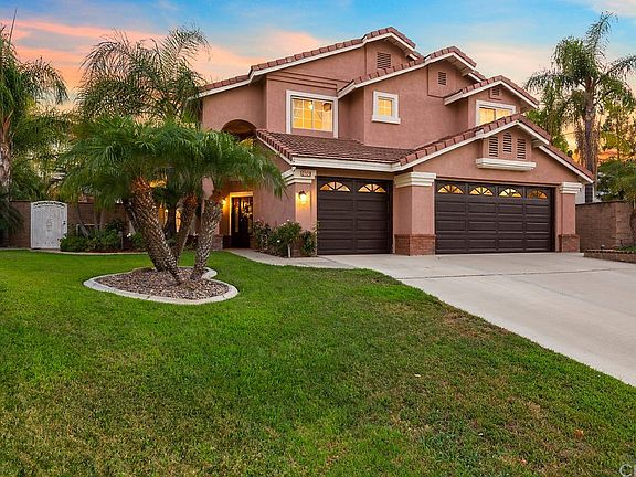 Great location in South Corona and located within the Santiago High School boundaries! This home is situated at the end of a very small culdesac street shared with only 4 other neighbors. This open, light and bright floor plan will delight you with it's combination of cathedral an vaulted ceilings as you walk in. The kitchen has been remodeled with new cabinetry, stainless steel appliances, quartz counter tops, breakfast counter at the kitchen island and a decorative tile back splash. The ample family room is open to the kitchen and boasts a built in media niche w/ surround sound speakers, and an elegant fireplace mantle. Entertain your guests with some spirits with your very own wet bar with counter and built-in wine/beer refrigerator. The spacious master bedroom suite if full of natural light and boasts a remodeled master bathroom and his/hers walk in closets. Other interior features include Remodeled bathrooms, tile floors, upgraded baseboards, luxurious crown moldings, ceiling fans, window blinds and recessed lighting all through out! Stay cool in your very own backyard Pool & Spa in those hot summer months or stay nice and warm sitting by your own barbecue pit and cook for your guests on your own barbecue grill complete with island and counter bar. Extra wide driveway with potential RV or boat parking. Instant savings, with the 16 solar panel system and LOW TAXES, NO HOA!