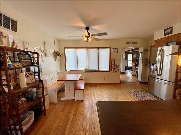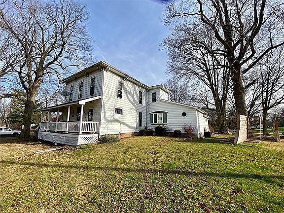 White Traditional 2-Story Farmhouse with 4 Bedrooms and 1.5 Bathrooms on over 1.15 acres of land. Morton outbuilding (1200 sq ft) with pneumatic tool access points & ports for air driven tools. Hardwood Flooring in most rooms preserve the charm of this comfortable home. Sunken Family Room has a gorgeous Bay Window w/ seating and French Doors. Updated Eat-In Kitchen with recessed lighting and pantry. Formal Dining Room & Living Room with Fireplace, built in cabinetry and exposed wood beams. Additional rooms on main floor could be used for crafting or work. Spiral Staircase takes you upstairs to 4 Bedrooms & Bath. The Basement offers many rooms for storage and additional work areas. Outside Deck with Trellis is a great place for entertainment and relaxing. A total of 6+ Cars Detached Garages. Rear of property includes chicken housing.