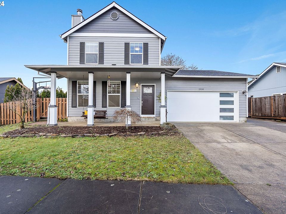 Welcome to this charming 2-story traditional home featuring 3 bedrooms and 2.5 bathrooms. Nestled in the heart of Forest Grove, it's just minutes away from the historic downtown and Pacific University. Embrace the convenience of a 2-car attached garage, RV parking, and a fully permitted additional garage. Recent updates include fresh paint, updated flooring, appliances, light fixtures, and a stylish staircase railing. The primary bedroom offers vaulted ceilings, an updated bathroom, and a walk-in closet with built-ins. Enjoy the spacious leveled backyard with plenty of outdoor space with room to enjoy playing basketball or create an ideal entertainment area, making this residence an ideal blend of comfort and location. Roof replaced in 2019, furnace and heat pump in 2017 and water heater in 2020. WELCOME HOME!