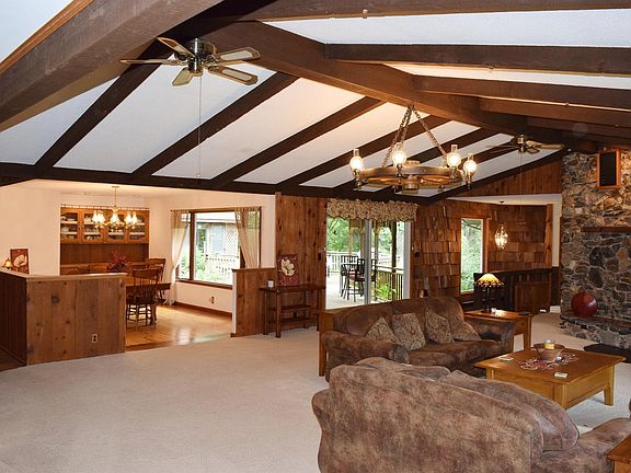 Do you like to hunt? Do you love privacy? Then this 6,000 sq ft home tucked onto 29 acres of private woods is the home for you. Features Hickory and walnut wood floors, Cambria countertops in the kitchen, beautiful views from every room, main floor laundry, extra large master with an unpolished marble fireplace and a Hollywood bath that boasts a sunk-in tub and separate tile shower. Lower Level has 2 full spacious bedrooms with 2 more bathrooms and there are heated floors in 3 of the 4 bathrooms. The main level has a split fieldstone fireplace which was harvested from the property and the lower level fireplace and bar are full fieldstone. Formal dining and sitting areas lead out to the spacious deck and flower gardens surrounding the gazebo along with a brook waterfall will wash away the days stress. Outdoors there is approximately 4 acres of pasture and a Lester Horsebarn with 5 box and 4 tie stalls, along with a Morton shed and a stream hidden in the woods inside the property line.