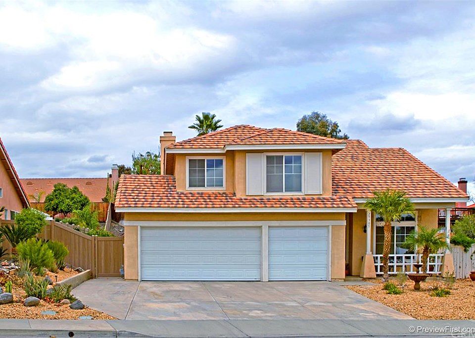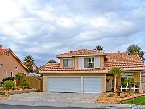 Wonderful 4 bedroom 2.5 bath home located at the North end of Lake Elsinore within a cul de sac on a huge lot. Kitchen was recently remodeled and upgraded with dark stained cabinets, Corian counter tops with full back splash and Stainless Steel oven and microwave. Kitchen opens to the family room with a gas and/or wood fireplace. Wood laminate floors throughout downstairs- formal living and dining rooms with vaulted ceilings. In the spacious master suite upstairs- natural light streams through the windows. Master bedroom has a separate shower and soaking garden tub, double vanity. Secondary bedrooms are spacious and have peek a boo lake and mountain views. Front yard has been landscaped with drought tolerate plants and rock-- which keeps the water bill low. The rear yard has a large alumawood patio cover and lots of concrete. Lots of room to do what you want- install a pool, basketball, sports court- many possibilities. This home has been owned by one owner and has been well taken care of. Nice neighborhood- walking distance to schools and parks. Close to freeway access and local shopping. Don't miss your chance to own this beautiful home.