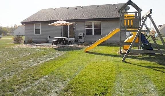 Newer 3 bedroom, with a split ranch design. Very spacious great room with cathedral ceilings. Open concept! Bright kitchen/dinette has plenty of storage space. MBR suite w/private bath and walk-in-closet. Main floor laundry! Sliding doors to new concrete patio and private backyard. Lot next to home is not buildable, which offers extra privacy! Beautiful wooded area behind property too.