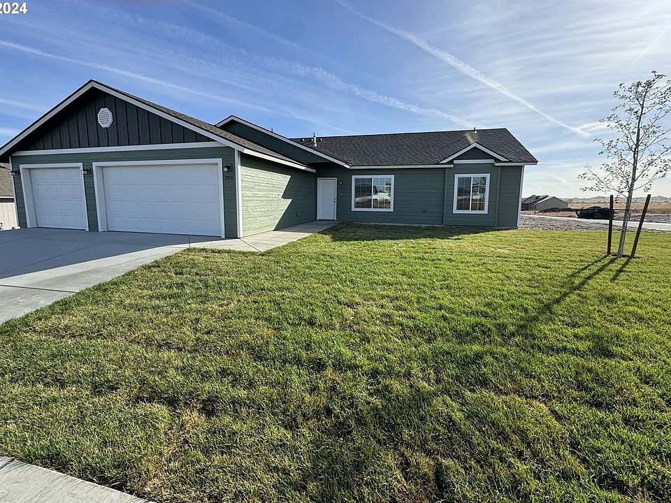 New construction, taxes not yet figured. Used for comparable purposes only. Upgrades to include, covered rear patio, fourth bedroom, finished garage, gas stub, pre-wire for ceiling fan, CAT-5 outlet, extra garage door opener with 2 remotes, laminate flooring, stainless steel appliance package, corner lot premium.