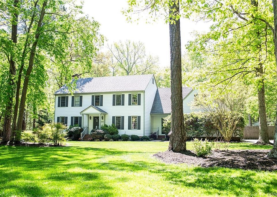 Outdoor living at its finest! Welcome to this gorgeous four bedroom colonial in the family friendly neighborhood of Powderham in the Robious Road corridor! The private 1.18 acre lot features a heated in ground pool surrounded by beautiful landscaping, fruit trees, large deck, patio with pergola, and children's playset. Entertain inside with the renovated kitchen boasting of granite counters, stainless steel appliances and tiled floor and backsplash. The formal dining room, living room and foyer have hardwood floors while the comfortable family room features carpet and a wood burning brick fireplace. Upstairs, the luxurious master bedroom includes an en suite bathroom, a dressing room with walk-in closet and direct access to the fourth bedroom/nursery. The master also has access to a bonus room over the garage that is a perfect home office or play room. The three other generous bedrooms full bathroom complete the second floor. Find your retreat in this family friendly oasis!