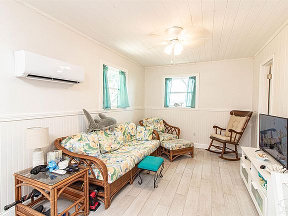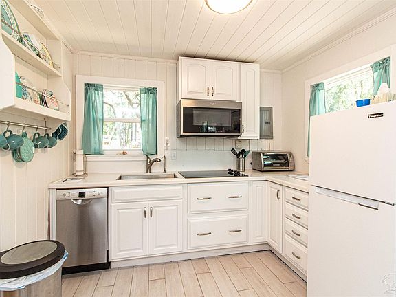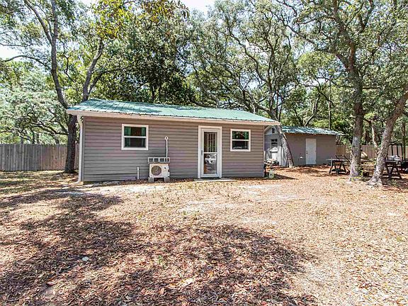Welcome to this charming home in the coastal town of Navarre, Florida, this East Bay waterfront home offers a unique blend of vintage character and modern comfort. Built in 1960, remodeled in 2000 and remodeled again in 2023 this beachy fishing cabin style home is the perfect retreat for family to enjoy the water. Situated along the tranquil shores of East Bay, this home is an oasis for outdoor enthusiasts and nature lovers. Boasting a waterfront location with RV hook up, the property grants direct access to the bay, making it an idyllic haven for fishing, kayaking, and boating adventures and more. The gentle lapping of the water against the shore creates a soothing ambiance, providing a perfect backdrop for relaxation. Sitting on the dock and watching the sunsets are breath taking. Spread across an expansive .42-acre lot adorned with abundant Live Oak trees, this property invites you to embrace the beauty of nature. With its lush greenery, the surroundings offer tons of shade and privacy, creating a tranquil atmosphere that allows you to disconnect from the hustle and bustle of everyday life. This quaint yet efficiently designed home spans 480 square feet and comprises two bedrooms and one bath. Meticulously remodeled on the inside, the residence has undergone a complete transformation, showcasing fresh classic charm. Step inside to discover a thoughtfully designed interior that seamlessly combines functionality with style. The heart of the home showcases striking quartz countertops and new white cabinets, setting the stage for culinary creativity. Brand new appliances, including a convenient Micro/Conv Oven combo and a drop-in cooktop, cater to the needs of modern living. The addition of a mini dishwasher ensures that daily tasks are a breeze. A comfortable living space is enhanced by an AC splitter unit with heat, ensuring year-round comfort regardless of the weather.