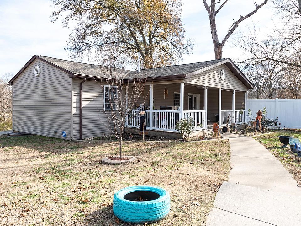 Unique ranch with a finished lookout basement on approximately 1.3 acre lot. Enormous kitchen and dining room combo with breakfast bar, lots of counter space, and tons of cabinets! Extra wide staircase down to the basement leads to a another level of living including two bedrooms, and rec area with a Built-in bar. Hidden entry under the stairs is a 5 by 6 panic room / built-in safe. All the appliances remain. Two car detached garage with workshop and shelving. Newer roof and freshly poured concrete patio and walkways. Gorgeous oversized covered deck. Call your favorite agent for your private showing today.