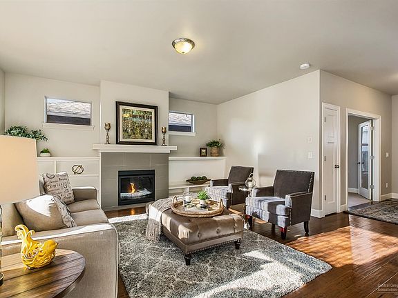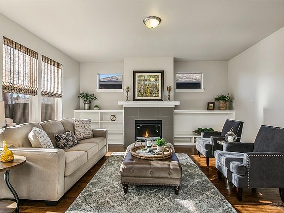 What a gem! You will love this well maintained, fresh and bright Prairie-style home! The open floor plan welcomes you with warm, contemporary finishes that include beautiful wood floors, tiled gas fireplace, built-ins, woven blinds and a large kitchen with quartz slab counters & island, stainless steel appliances & walk in pantry. An office/den or 4th bedroom on the main level. Spacious Master bedroom suite, 2 additional bedrooms and laundry room upstairs. Mountain views from second level. Fenced in back yard for privacy and an oversized 2 car garage with plenty of room for all your toys. Located in the desirable NE neighborhood of Eagle's Landing with convenient location to St. Charles Medical Center and only a block from Mountain View Park. This comfortable, move in ready home was built by respected Woodhill Homes.Energy efficient with Earth Advantage certification. Open house this Saturday, January 11th from 12:00-3:00.