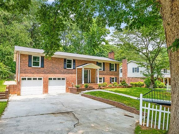 Split foyer floor plan in the Mountain Brook neighborhood near I-40, restaurants, shopping, both hospitals and Hanes Mall Blvd! This beautiful brick 4 bed/2.5 bath home is move in ready! The spacious kitchen features granite countertops, new stainless steel appliances and updated light fixtures. The home has beautifully finished hardwood floors on the upper level and updated light fixtures throughout. All bathrooms have updated lighting and vanities. Updated HVAC with a new touch screen thermostat. The 2-car garage features built in shelving for additional storage. Spend your evenings relaxing on the oversized back deck in addition to your large fenced in backyard. Schedule your showing today!