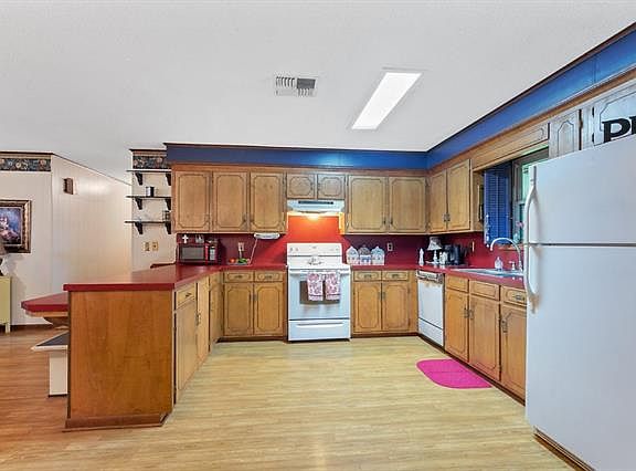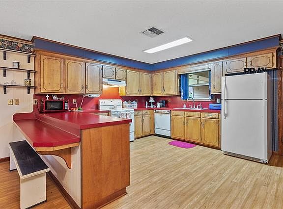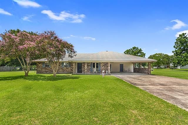 Seller requests A/C status for backups. Well maintained home on 1 acre tract-Lots here to Love! Open Floor Plan-Kitchen/Dining/Living areas; Kitchen has good cabinet space & a breakfast bar seating area; Living room has nice windows, ceiling fan, gas fireplace (propane); Good size laundry room with sewing table/desk area; Mud Room with closets & storage & shower; Guest Bathroom has shower/tub combo with separate vanity area; Master bedroom with tile flooring, ceiling fan; Master Bathroom has shower/tub combo and closet area. Oversized covered patio area with place for plenty of seating. In the 900 SF Outdoor kitchen area you find a commercial stove, half bath, built in bar and indoor storage closet & easy to converted into a living area. Storage shed behind the home. Reserved in outdoor kitchen area: Bar/Beverage signs/light fixtures, all furniture, Television & SS Sink on Patio. BELL CITY SCHOOLS optional for this location. All Hurricane damages complete-see amended PCD. Flood Ins $880/yr. $1,000 Deposit & Pre-approval required with all offers.