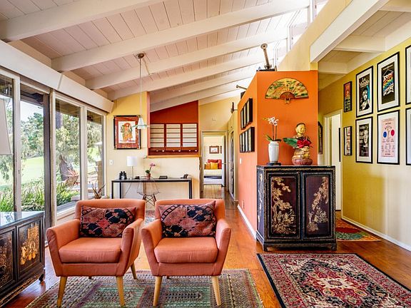 Prepare to be wowed by the verdant view of the 8th green of MPCC's Dune Course. The setting is private and quiet at this mid century modern rustic wood and earthy adobe brick home. Single level, vaulted ceiling and with clerestory windows giving abundant natural light. Wood flooring in most rooms. Wood burning fireplace, a separate pantry room, laundry room plus over-sized two car garage. Circular driveway plus long driveway to garage gives plenty of parking for entertaining. Refrigerator, washer/dryer included. Extensive patio space from which to enjoy the view and multiple planting areas including a sweet organic vegetable garden. 10,100 sf lot with green belt on the north lot line. Kitchen and bath await your updates. Easy access to MPCC and walking distance to the beach and Spanish Bay Resort. Enjoy the Pebble Beach lifestyle and amenities of the Monterey Peninsula.