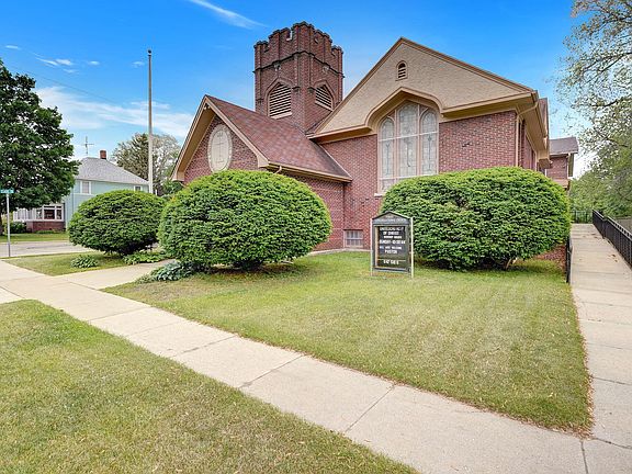 Congregational Church and Parsonage House. Unknown age of Church, addition in 1968. 5 furnaces, 2 central air units, 1 water heater. 2 kitchens and dining hall, soaring ceiling and beautiful woodwork, stained glass windows in the church. Sunday school/meeting rooms, former Pre-school rooms in LL. Tons of space for offices, storage. House rents for $750/mth and tenant takes care of snowblowing and lawn care. Roofs on both buildings needs replacing.