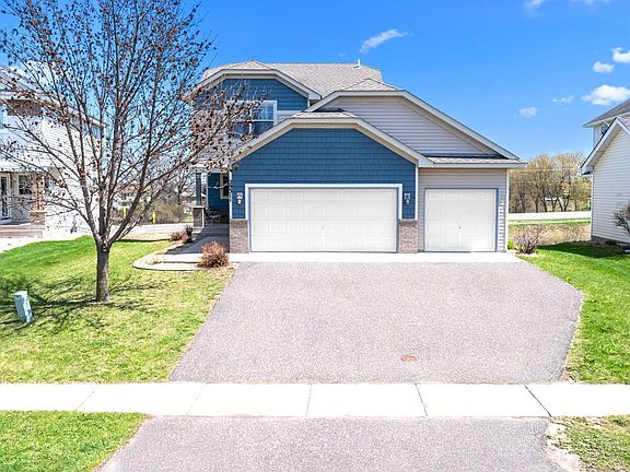 Updated 4 bed/4 bath home for sale in Wilderness Ridge subdivision. This home features new carpet throughout all levels of the home and new vinyl flooring in kitchen/dining area. Fresh paint in the lower level bedrooms and bathroom and 4 new windows have been installed. Brand new/never used stainless steel appliances in the kitchen. Main level has kitchen with walk in pantry, dining with walk out to small deck over looking the backyard, and living room with fireplace, 1/2 bath, and access to attached 3 stall garage with additional lofted storage space. Upstairs you will find the primary bedroom with walk in closet and full en suite with jetted tub, two additional bedrooms are on this level as well as another full bath. Lower level of the home has a large family room with walkout to the backyard., fourth bedroom, full bath, laundry room, and utility room with storage space. This home sits on a nice lot that over looks a pond area and borders neighborhood walking/bike path. Sprinkler system is installed.