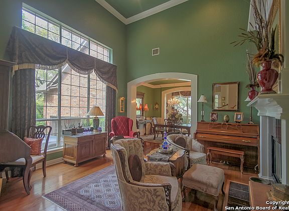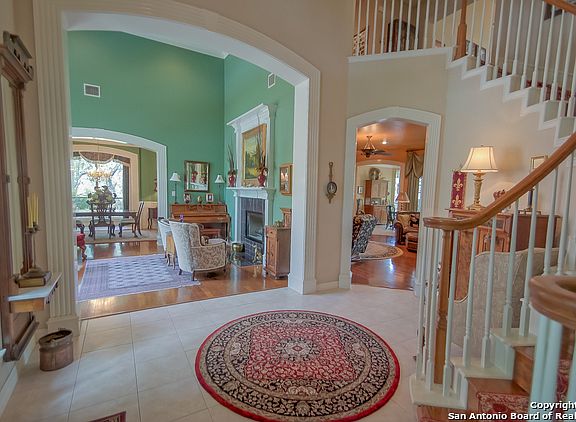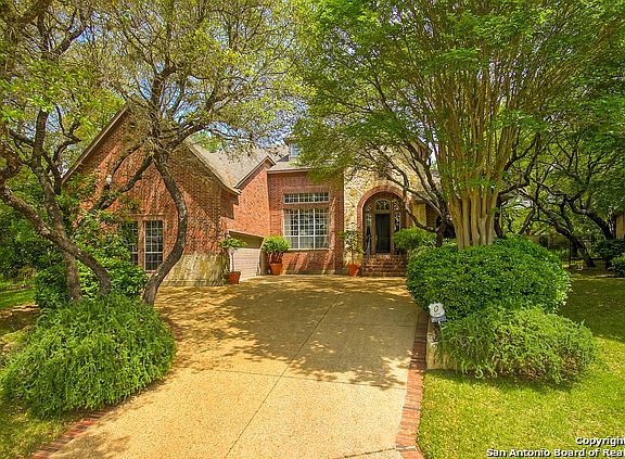 SELLER SAYS DRASTIC PRICE DROP TO GET THIS SOLD! This elegant 2-story home on a cul-de-sac across the street from Fair Oaks Ranch Country Club has it all. A grand entrance with high ceilings and spiral staircase welcomes you to this 4 bed/3.5 bath home. Hardwood floors in 2 living areas with double sided fireplace, dining room and Master Bedroom. Updated kitchen w/ granite and updated appliances. Large master bedroom on main level and updated bathroom w/ walk-in shower, tub and XL closet. Upstairs provides a loft/gameroom, 2 bedrooms with Jack & Jill bath, and a guest suite with it's own bathroom. Backyard is an entertainers delight w/ covered patio, plenty of mature oak trees, extended stamped concrete patio with double sided fireplace & outdoor grill, and plenty of grass to run around in. Award winning BOERNE ISD.