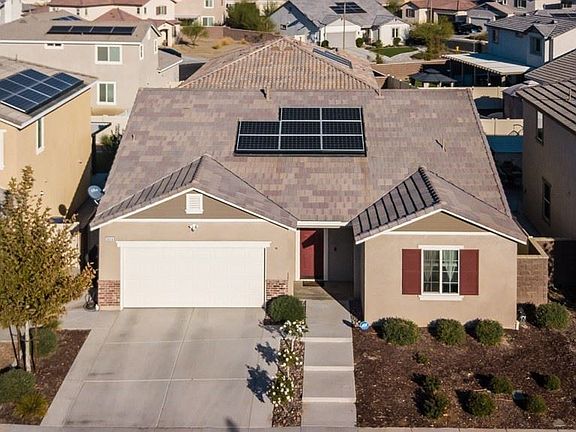 Welcome to 29316 Wild Lilac! Let's get right to it. This is a beautifully maintained 3-bedroom, 2-bath single story home that will definitely check off most, if not all of the items on your must have list. Starting with the kitchen...not only does it open to the spacious living and dining area but it's got granite countertops, white cabinets and a walk-in pantry. There's also an oversized island which houses the dishwasher, kitchen sink and breakfast bar. The open living and dining room are perfect for entertaining and surrounded by windows therefore offering lots of natural light. Made for a king size bed and then some, the spacious primary suite has a lovely view of the backyard, plus an ensuite with a double vanity, walk-in shower, private toilet and large walk-in closet. A custom made sliding door was recently installed between the primary bedroom and bathroom to create even more privacy. Two sizable secondary bedrooms, a full bathroom as well as a laundry room make up the rest of the home. Out back, you'll find a covered patio along with easy to maintain landscape and fresh mulch. The home also comes with paid solar panels, a Ring video doorbell and has ADT capability. All nestled in a Summerly neighborhood close to the community pools, spa and club house. It's a quick walk to Sunshine Park where you'll enjoy lots of grass, trees, and a kids playscape. This home is also close to Storm Stadium, a Stater Bros shopping center and 15 freeway. Don't let this opportunity pass you up!