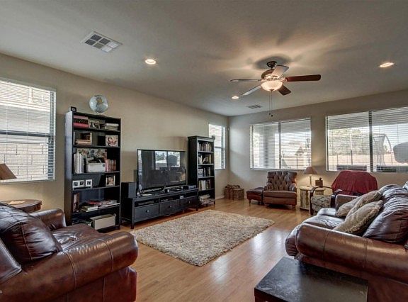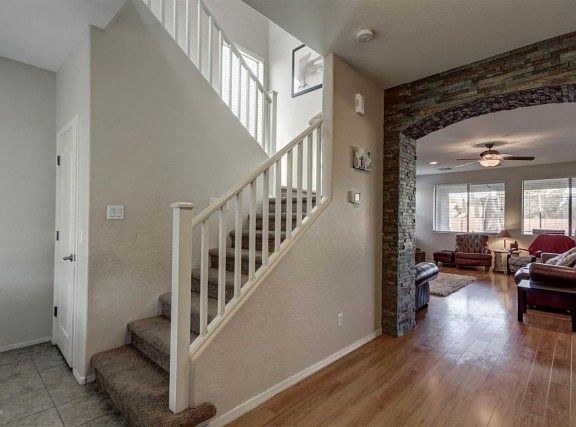 Spacious open floor plan built in 2009. Kitchen overlooks living room, dining room and the back yard. 4 bedrooms plus a bonus loft space on the second floor, perfect for an office or play room. 2nd floor master bedroom is separated from other bedrooms. Walk in closets in all bedrooms. Updated kitchen in 2013 with granite, stacked stone, dual ovens and gas cooktop. Newer garbage disposal, water softener and stacked stone accents.