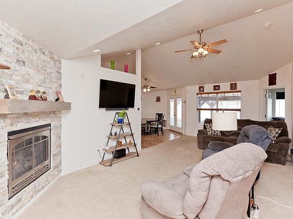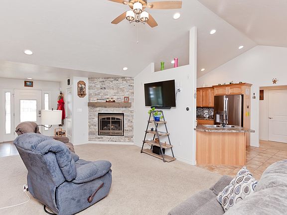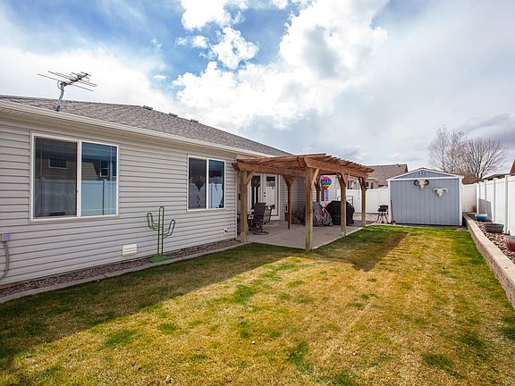 Beautiful four bedroom ranch in a great neighborhood! This delightful home is spacious and inviting! Living room has vaulted ceilings and gas fireplace and opens to the large kitchen and dining! Kitchen has nice appliances, beautiful cabinetry, pantry w/slide-outs, and lots of counter space. Primary suite is HUGE w/ walk-in shower, jetted tub, double sinks, walk-through closet and an outside entrance to a lovely pergola covered patio with a sun shade! Three add'l good sized bedrooms, one large enough to be another family room and has built-in Murphy bed! Beautifully updated second bath with handicapped accessible tiled shower. Large three car garage with 220 and plenty of cabinet and counter space for a great work area. RV parking with covered carport covering, large shed and a big patio for outside entertainment. And when it's hot outside, central air to keep you cool! Come see your new home today!