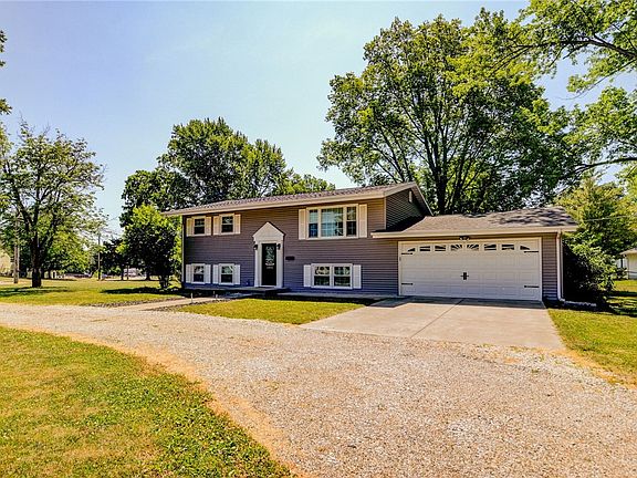 Come check out this gorgeous 4 bedroom, 2 bath home on the south edge of town! Located on a nearly half an acre corner lot, fenced yard, circle drive and just minutes from golfing, shopping and dining! This home has upgraded HVAC, replacement windows, fresh paint, new flooring, both full bathrooms renovated along with granite and stainless appliances in the remodeled kitchen. Shaded patio and deck off main level dining space are perfect for entertaining guests. Keep the attached garage clutter free with the BONUS storage shed in back. Great floorplan for the family looking for plenty of living space on both upper & lower levels. This home is sure to impress the turn key buyer looking for space to grow!