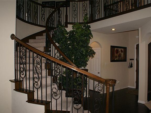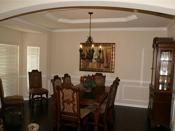 Beautiful Pool and Spa with outdoor Fireplace, OKLA Stone coping, cedar trellis, covered patio, pool w-slide, blue pool plaster, very well landscaped and lots of deck area. Home is loaded w-hardwood in entry, dining, den, kitchen & breakfast. Kitchen has gas cooktop, granite, wood floors & stainless appl. Dramatic curved stairway has Iron balusters, Bridged Landing and an overlook from game room and hallway to 2 story Den . Media room w-1080P projector, 110 inch Screen, Media room also has a Wet Bar with Refg, granite, surround sound, long thick black shag carpet, rack for Media equipment. Master bedroom with fireplace, setting area and view to pool and yard. Den has stone fireplace and hardwood floors .