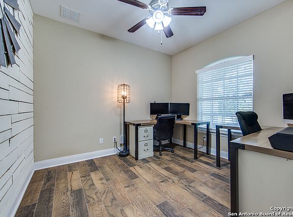 This home is an entertainer's dream with a beautiful open floor plan and a huge covered patio! Amazing vaulted ceilings with a large game room overlooking the family room below. Downstairs has ceramic tile throughout, including the office and large master suite. Ample storage throughout home with large walk-in closets, linen closets, and a three car attached garage. Many extras including two ovens, solar screens, landscaping brick work and shed in backyard. Great location close to IH35 and entertainment.