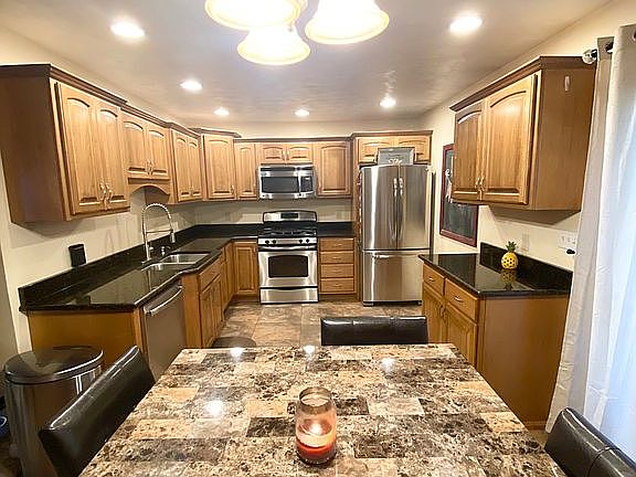 Beautiful spacious 4 bedroom on almost 1/2 acre corner lot. 2 full bathrooms. Large living room and family room. Stainless steel kitchen appliances, kitchen has sliding door to big deck and fenced in yard. 2 car attached garage, and circle driveway.