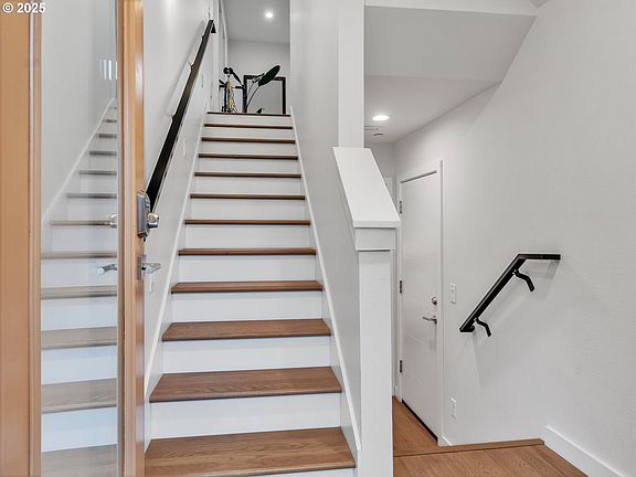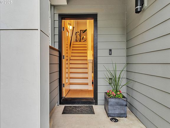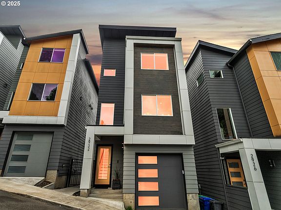 Welcome to a hidden gem perched in a quiet, private subdivision just moments from I-205, Lents Park, Kelly Butte, and some of Portland’s best local dining. Built in 2019, this NW contemporary home blends modern design with luxurious finishes and thoughtful upgrades throughout, offering an elevated lifestyle in a convenient location. Step inside and immediately feel the care and craftsmanship that went into every detail. The entry opens to engineered hardwood floors that flow seamlessly into a spacious lower-level primary suite. Complete with a remodeled bathroom featuring a walk-in shower, tile stone flooring, and upgraded fixtures, this retreat also boasts a walk-in closet and sliding doors that open to a serene back deck with city views. The main floor is bright, airy, and filled with natural light thanks to large windows, tall ceilings, and custom recessed lighting. A cozy gas fireplace and built-in walnut bench create an inviting living space, while the open-concept layout connects effortlessly to the gourmet kitchen. Enjoy GE Café appliances, quartz countertops, upgraded cabinetry, a statement tile backsplash extending to the ceiling, and well-planned touches that elevate functionality and style. Upstairs, two generously sized bedrooms share a Jack-and-Jill full bathroom — perfect for guests, family, or flexible living needs. All bedrooms have been updated with white oak engineered hardwood and all bathrooms feature Raine natural stone tile, blending elegance with durability. Additional upgrades include custom window coverings, added storage, upgraded hardware and cabinetry, and energy-efficient features. With a perfect Home Energy Score of 10 and the benefits of Portland’s HOLTE tax abatement program, this is modern luxury living at an exceptional value. Don't miss your chance to own a home where style meets substance — schedule your tour today! [Home Energy Score = 10. HES Report at https://rpt.greenbuildingregistry.com/hes/OR10181496]