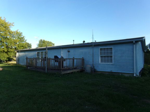 This is a single story manufactured home with 3 bedrooms, 2 baths on a full unfinished basement. Home is on a 1.55 acre lot in Angola Schools.