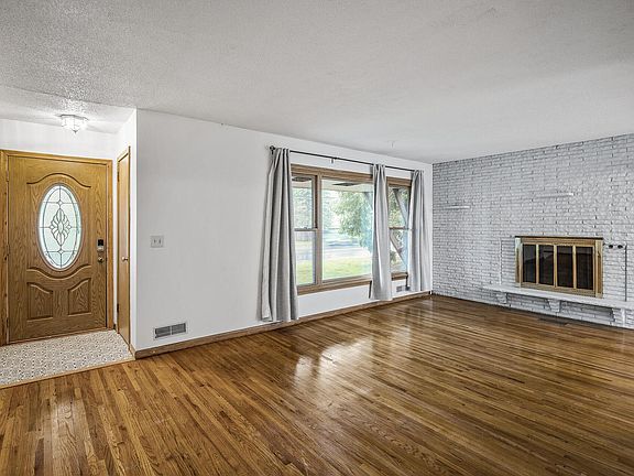 Inside, hardwood floors span both the main and bedroom levels, offering warmth and character. The open main floor features a full-wall brick fireplace and offers potential to open up even more and build equity while making it your own! All three bedrooms are conveniently located on one level.