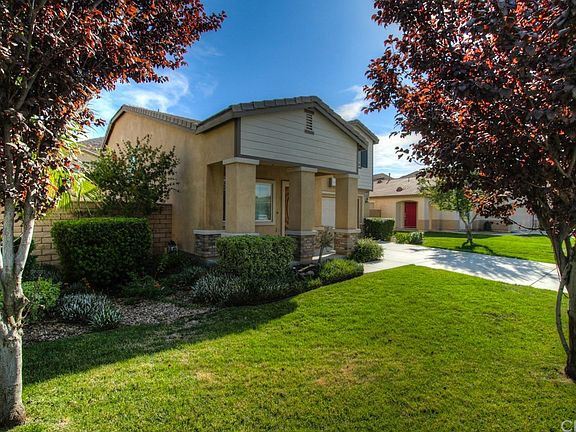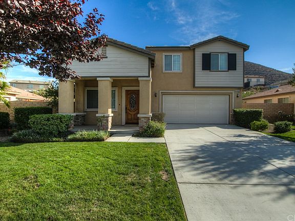 Welcome to Canyon Heights! This amazing community is conveniently located between the 15 and 215 freeways in the rapidly growing City of Menifee! Tucked away at the back of the neighborhood on an oversized Cul De Sac lot, this well designed floor plan offers a large flexible space at the entry which could be used as a formal living/dining room, a game room, or one huge family room, perfect for entertaining! The floor plan continues around the corner into a more cozy great room area tied in to the family kitchen which overlooks the backyard. The kitchen features granite, stainless steel appliances, a central island, ample counter top space, and a large pantry. The family room has a large media niche for your entertainment needs. Off the family room is a large downstairs bedroom overlooking the rear yard, along with a full bathroom downstairs. As you head upstairs, you walk directly into a large open loft and find yourself in an open central living space with the master bedroom to your left, and 2 additional bedrooms, a bathroom, and a full laundry room just beyond the loft. The master bedroom features double door entry, lots of natural light, a spacious master bathroom with dual sinks, separate tube & shower, and a large walkin closet. Canyon Heights is just minutes to the freeway yet sits tucked away in a canyon surrounded by open space for mountain bike riding, and hiking trails to expolore the wide open space. And the elementary school is right inside the community as well!