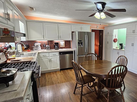 ONE-STORY LIVING! Beautiful home for entertaining. Home features three bedrooms, two full baths, two half baths, office, two dens, updated kitchen, two-car main level garage, screened in deck off of main bedroom. Windows were replaced in 2016. Large separate covered deck for entertaining and grilling. The deck is supported for a hot tub. The unfinished partial basement leads outside to a partially fenced-in area of the one-acre yard along with covered parking, RV hookup, and storage shed. One mile south of Locust Fork schools.