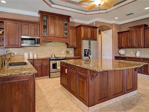 - Interior Features: Ceiling Fans(s), High Ceiling(s), Living Room/Dining Room Combo, Master Bedroom Downstairs, Split Bedroom, Central Vaccum, Crown Molding, Walk-In Closet(s), Open Floorplan, Solid Wood Cabinets, Eating Space In Kitchen, Kitchen/Family Room Combo, Stone Counters, Tray Ceiling(s), Sauna
