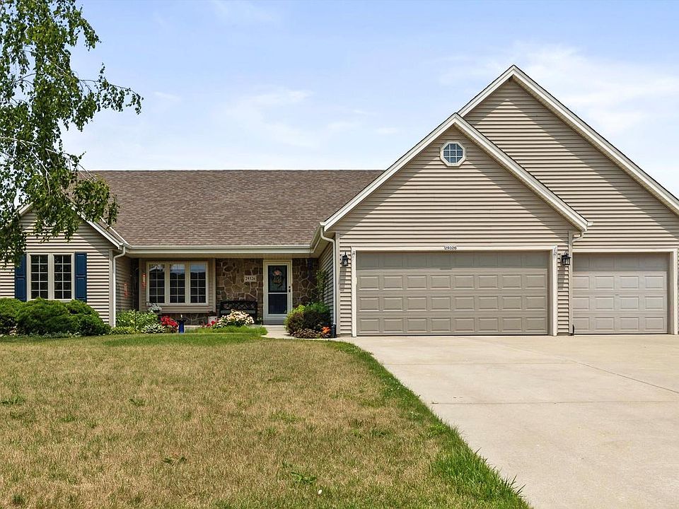 Welcome to this stunning ranch home located in Waterford, WI. Situated on nearly a half-acre lot, this property offers a spacious & private setting with a fenced yard & large deck, perfect for enjoying outdoor activities. Boasting 4 bedrooms plus a den/office & 3 bathrooms, this home provides ample space for both living & working. The 3-car attached garage ensures convenience & storage options. The open concept layout creates a welcoming atmosphere, ideal for entertaining guests. A gas fireplace adds warmth & charm to the main living area. The finished lower level features daylight windows, expanding the living space and allowing plenty of natural light. The split bedroom design provides privacy & comfort, while the main level laundry adds convenience. Make an appointment today!