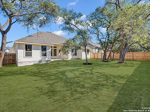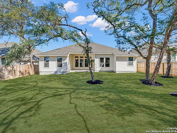 Introducing the Gardner Plan - Single-Story Elegance and Modern Luxury Step into the Gardner Plan, a beautifully designed single-story home that redefines luxury and functionality. This exceptional residence features 4 spacious bedrooms, including a master suite retreat that offers unmatched comfort and style. Primary Bathroom: Indulge in our signature Spa Luxury Shower and enjoy the convenience of an oversized walk-in closet. Guest Suite: Bedroom 2 boasts a private en-suite bath with a walk-in shower, perfect for visitors. Jack-and-Jill Design: Bedrooms 3 and 4 share a thoughtfully designed bathroom, with private vanities for added privacy. The open floor plan is ideal for both entertaining and daily living, with 8' interior doors adding a touch of grandeur throughout. The gourmet kitchen is a chef's dream, featuring built-in appliances, a gas cooktop, and elegant finishes that make cooking a pleasure. This home is currently under construction, with an estimated completion date of March 2025. Don't miss the opportunity to own this exceptional home that perfectly blends luxury, practicality, and timeless design. Enjoy a FREE complimentary one-year membership to Fair Oaks Ranch Golf & Country Club with your purchase! Sizes and details are approximate; please confirm with the sales team.