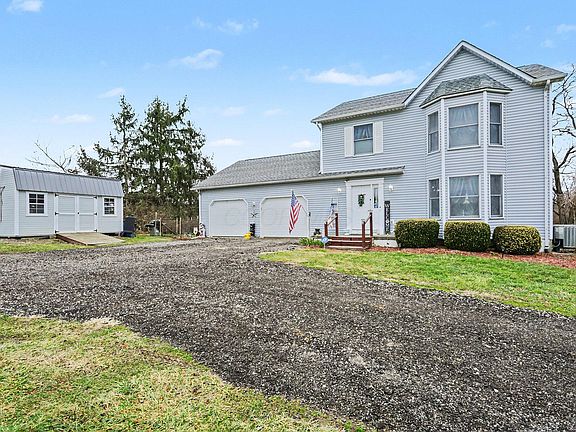 This 3-bedroom, 2.5-bath home offers 2,394 sq. ft. of comfortable living just outside the city. Located in a quiet neighborhood with friendly neighbors and even friendlier deer, it features a spacious eat-in kitchen with ample cabinet space, an island, pantry, and stainless steel appliances that stay with the home. The laundry is conveniently on the main level, along with a formal dining room perfect for gatherings. The large master bedroom boasts a walk-in closet, bay window, and full bath. The finished walkout lower level opens to a deck overlooking a beautifully landscaped, fenced yard on 1 acre with great views. Additional perks include a 2-car attached garage with built-in shelves, a large shed for extra storage, vinyl plank flooring throughout the main level, and a circular driveway with a thick asphalt chip layer for convenience.