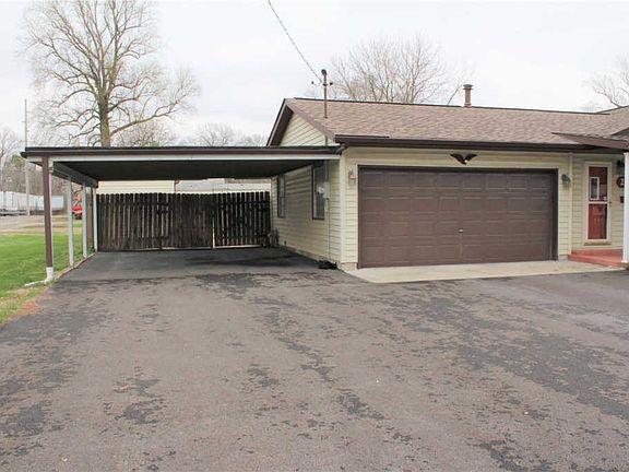 Charming two bedroom home on corner, triple lot with covered front porch and an attached carport as well as an oversized attached garage with space to work in. Step in through the garage to find a mud room and large laundry room with included washer and dryer. Walk further, into the eat-in kitchen with lots of wood cabinets along with a pantry. Stove, dishwasher, and microwave also stay, making this a great home for a family just starting out! The kitchen flows into the spacious living room, which features a beautiful stone mantle (FP is not functional) & sliding doors that brighten the room and walk out to the fenced in backyard with covered patio and shed. Both bedrooms feature lighted closets with built in drawers &shelves- lots of storage space there! There is also a bonus room that would be perfect for an office or playroom. Newer vinyl flooring in kitchen, laundry and bathroom. Roof 2014, water heater 2014. Home warranty included from HMS. Home has passed occupancy inspection.