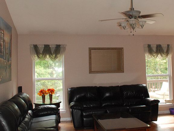 3 BR, 2 bath home on cul-de-sac, beautiful lot backs to woods, wood floors throughout, vaulted ceiling in all 3 bedrooms, kitchen, dining, and living room, partially finished space in lower level